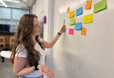 Organizo sesiones para que todos estén en la misma página. Ayudo a que las ideas fluyan entre personas de áreas distintas y se conviertan en decisiones compartidas.